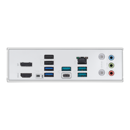 I/O 1 x USB 10Gbps port (1 x USB Type-C®);3 x USB 10Gbps ports (3 x Type-A);2 x USB 5Gbps ports (2 x Type-A);2 x USB 2.0 ports (2 x Type-A);1 x DisplayPort;1 x HDMI™ port;1 x Wi-Fi module;1 x Realtek 2.5Gb Ethernet port;3 x Audio jacks;1 x BIOS FlashBack™ button